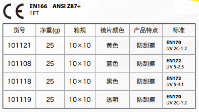 舒適型安全護(hù)目鏡,專為亞洲人臉型,提供舒適貼合性。時(shí)尚無(wú)框,扁平狀軟質(zhì)匙狀鏡腳,一體式中橋,PC鼻梁架,無(wú)側(cè)面視野阻礙。四種不同款色適應(yīng)不同光線強(qiáng)度環(huán)境使用。為你提供全天候的舒適保護(hù)。