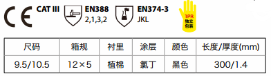 高端款氯丁防化手套,針對各種油、酸、堿、醇和多種溶劑提供全面防護。采用大開度手套輪廓,靈巧性較好,減少操作時的手部疲勞感。舒適植棉襯里,吸汗性能優(yōu)異,能長時間保持手部干爽。 適用于酸堿化學品處理、脂類或溶劑加工,石油化工等化學危害性風險較大的環(huán)境。