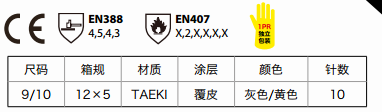 覆皮加強版防切割手套,TAEKI防切割技術(shù)及較好牛皮加強掌面、指尖和虎口加強。頂級防機械風(fēng)險手套,提供更長使用壽命,可短時接觸高溫250°C,在油性環(huán)境下有優(yōu)秀的抓握性能。 適用于模具生產(chǎn),金屬件處理,玻璃回收及汽車制造。