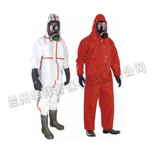 液密中型連體防化服,CSM Hypalon?防火面料。帶防酸兜帽,袖口和褲腳彈性收緊。內(nèi)層式拉鏈,外覆有粘邊,縫處已硫化,可防止?jié)B透。