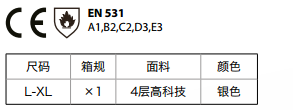 防金屬噴濺連體隔熱服,4層隔熱屏障,表面鍍鋁隔熱面料及特殊防金屬噴濺黏固涂層,有表面鍍鋁技術(shù),有效防止冷熱潮濕環(huán)境引起鋁層脫落。具有優(yōu)異的隔熱阻燃防護(hù)效果,以及較好的防熔融金屬飛濺效果。